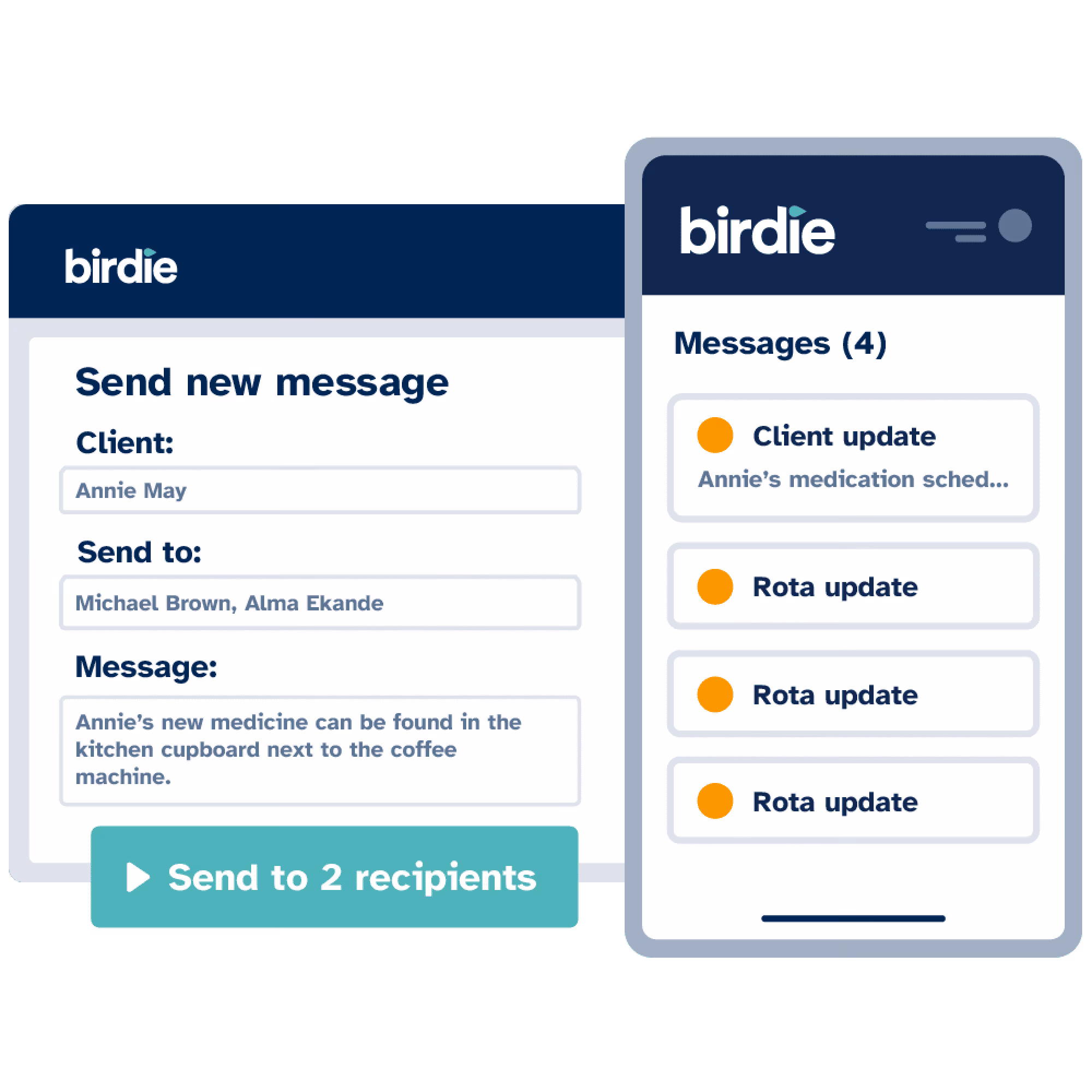 Birdie's Message Centre keeps Care Professionals by sending notifications straight to their phones in real-time.