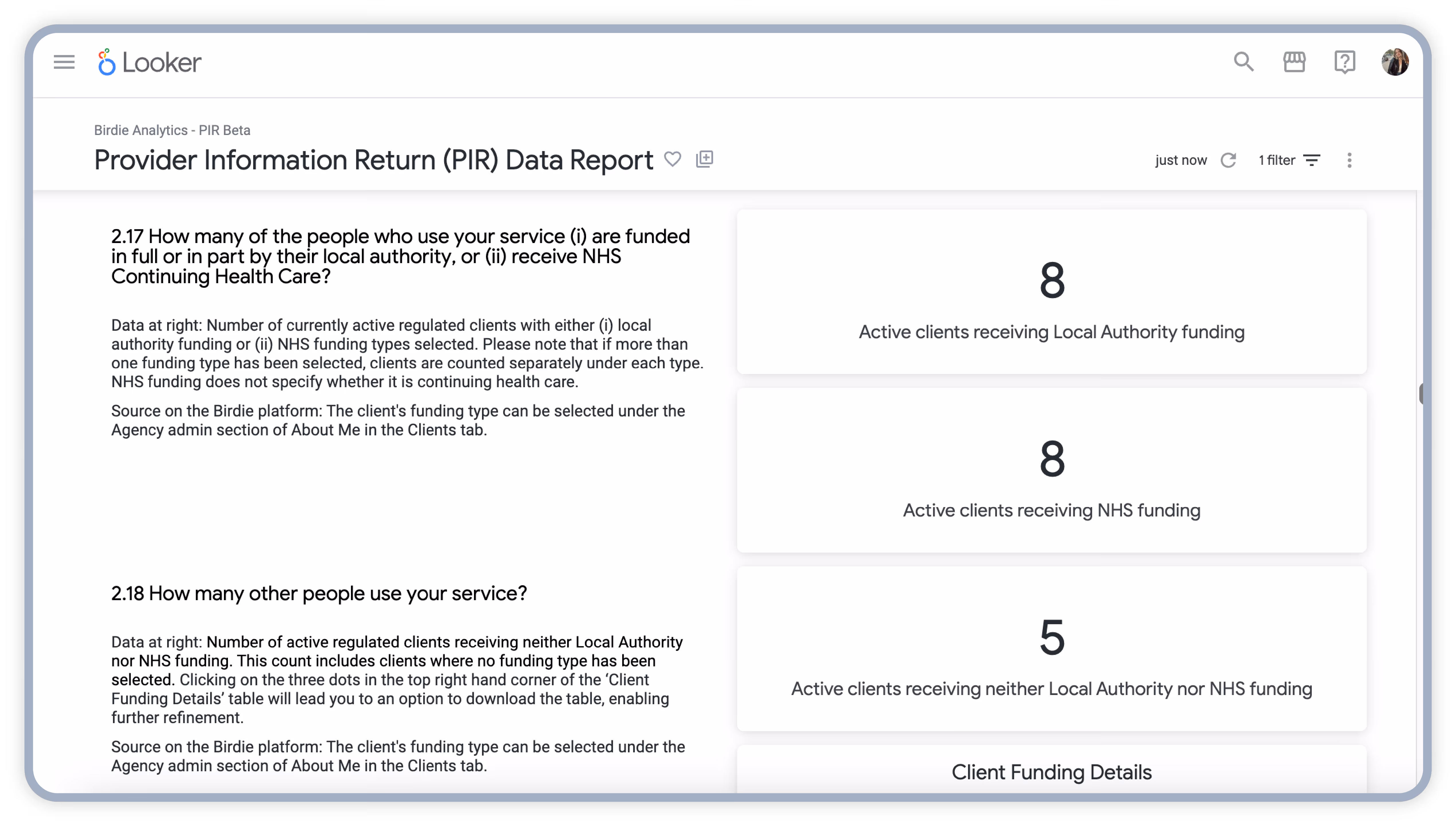 Stop struggling with CQC Provider Information Return prep. Birdie’s PIR report makes it easy to access the information required for key PIR questions.