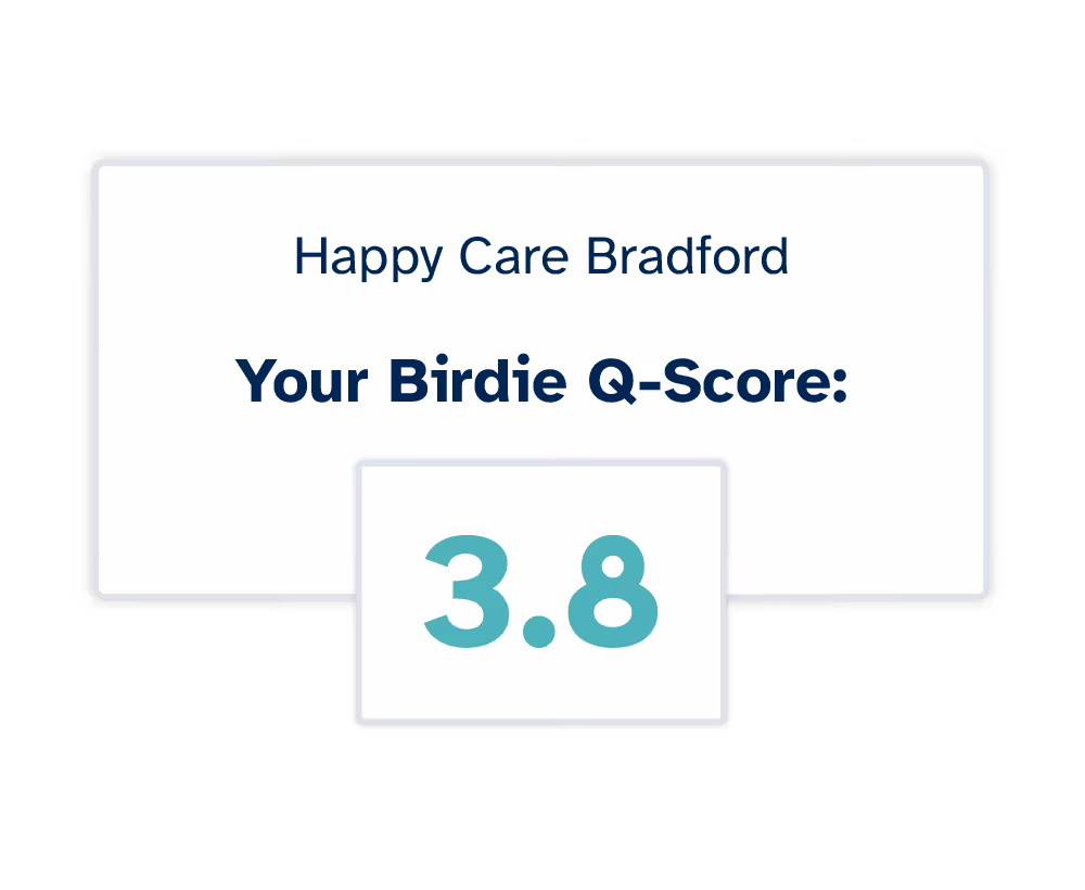 The Birdie Q Score has been created in line with the Care Quality Commission's categories. We have created the Q Score to help our partners provide the highest quality of care and work to achieve” Outstanding.” This report creates a personalised score based on information taken you and your team input, with each category marked out of 4 in line with the CQC's scoring system.